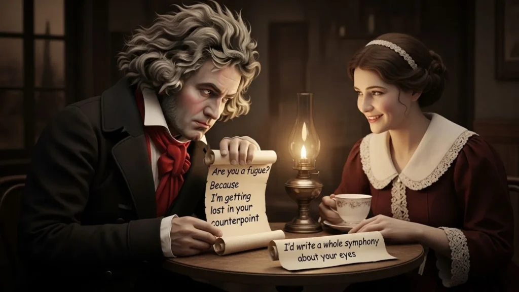 So instead of guessing, I decided to quickly look it up and understand what Beethoven pickup lines actually meant. That’s when I realized they’re basically funny, clever, and sometimes romantic lines inspired by classical music and the legendary composer Beethoven. Once I understood the idea, it actually made the conversation way more fun.
